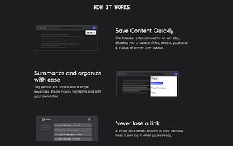 Atlas służy jako wszechstronne narzędzie dla użytkowników do kuracji i udostępniania wpisów blogowych, podcastów, tweetów i filmów, z którymi spotykają się podczas przeglądania internetu. Łączy funkcje narzędzia do zakładania zakładek, narzędzia do późniejszego przeczytania i narzędzia do udostępniania, dzięki czemu jest kompleksowym rozwiązaniem do zarządzania i organizowania treści bogatych w wiedzę.